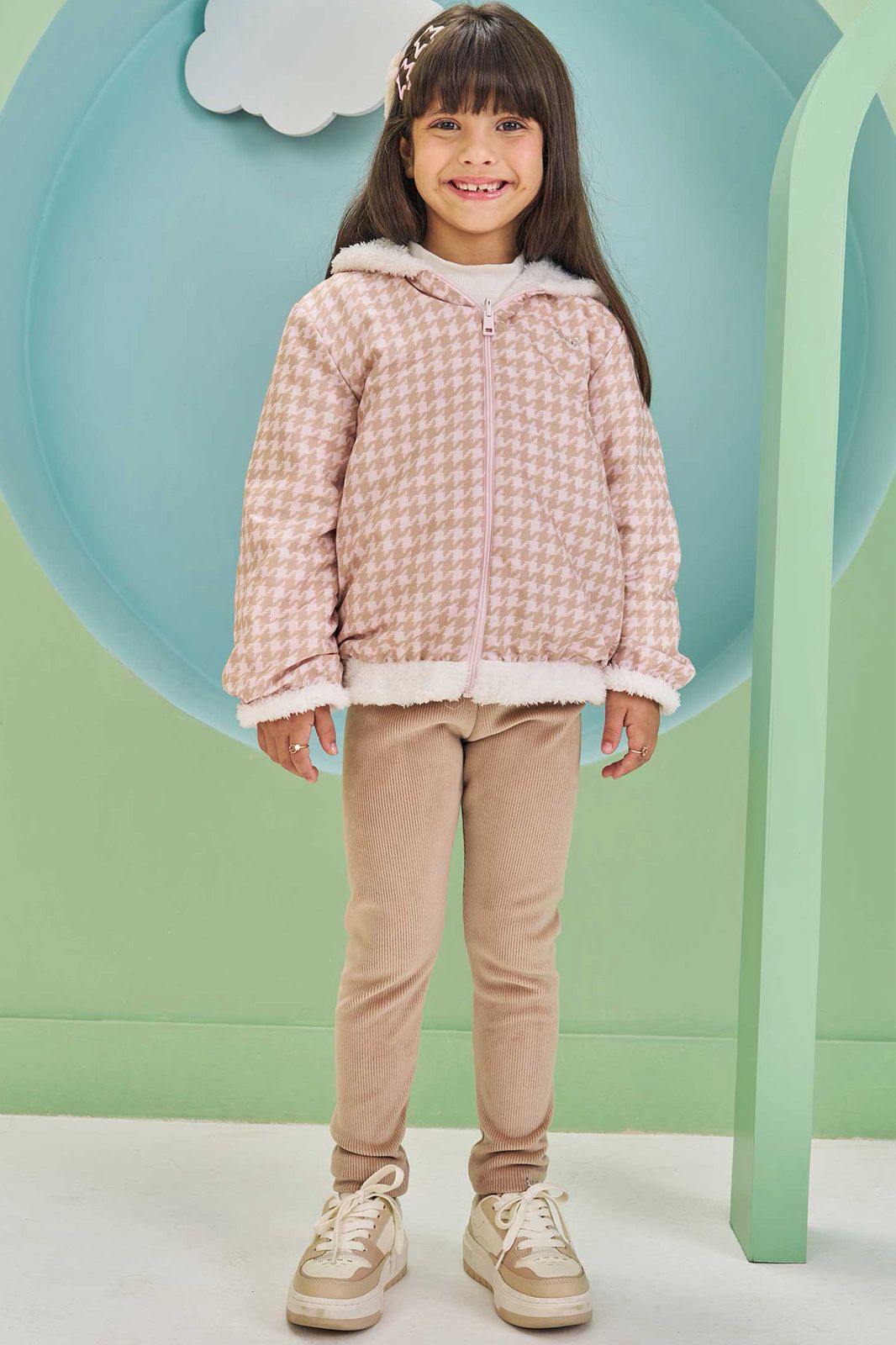 Conjunto de Blusão em Pelo Carneirinho e Calça Legging em Fleece Cotelê com Elastano 80869 Kukiê